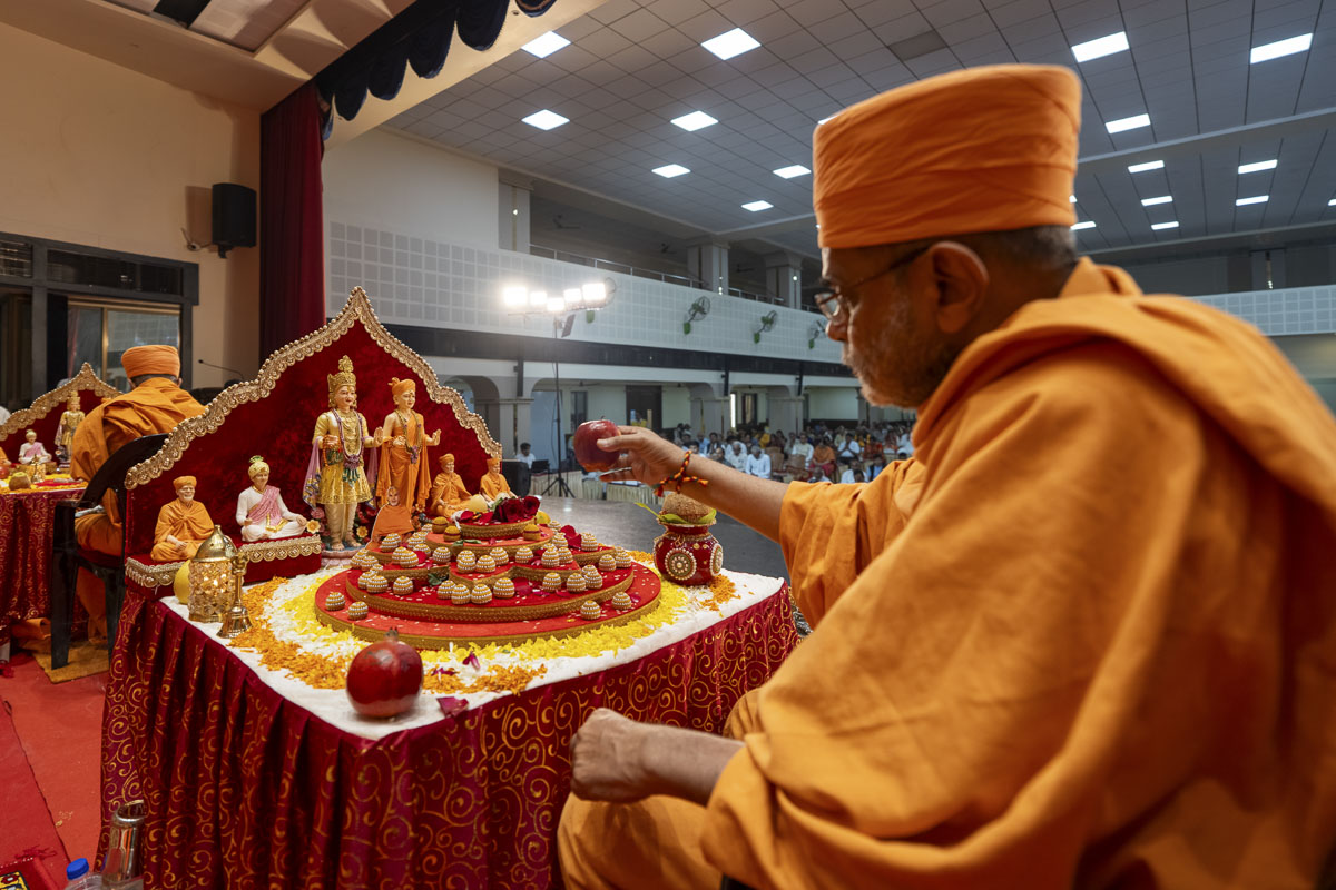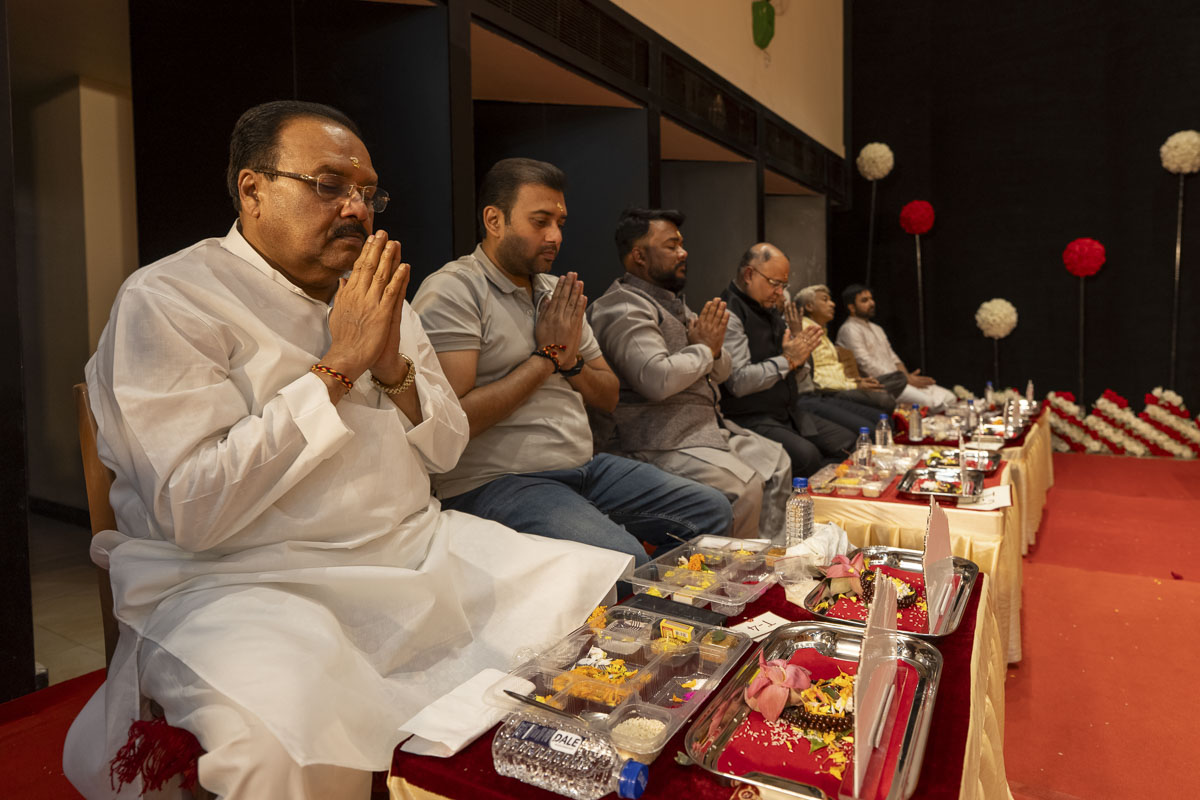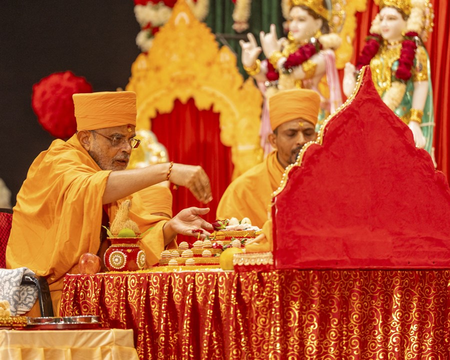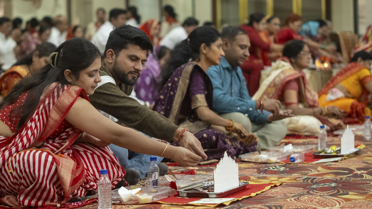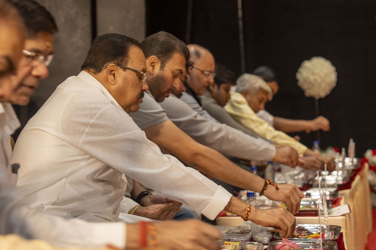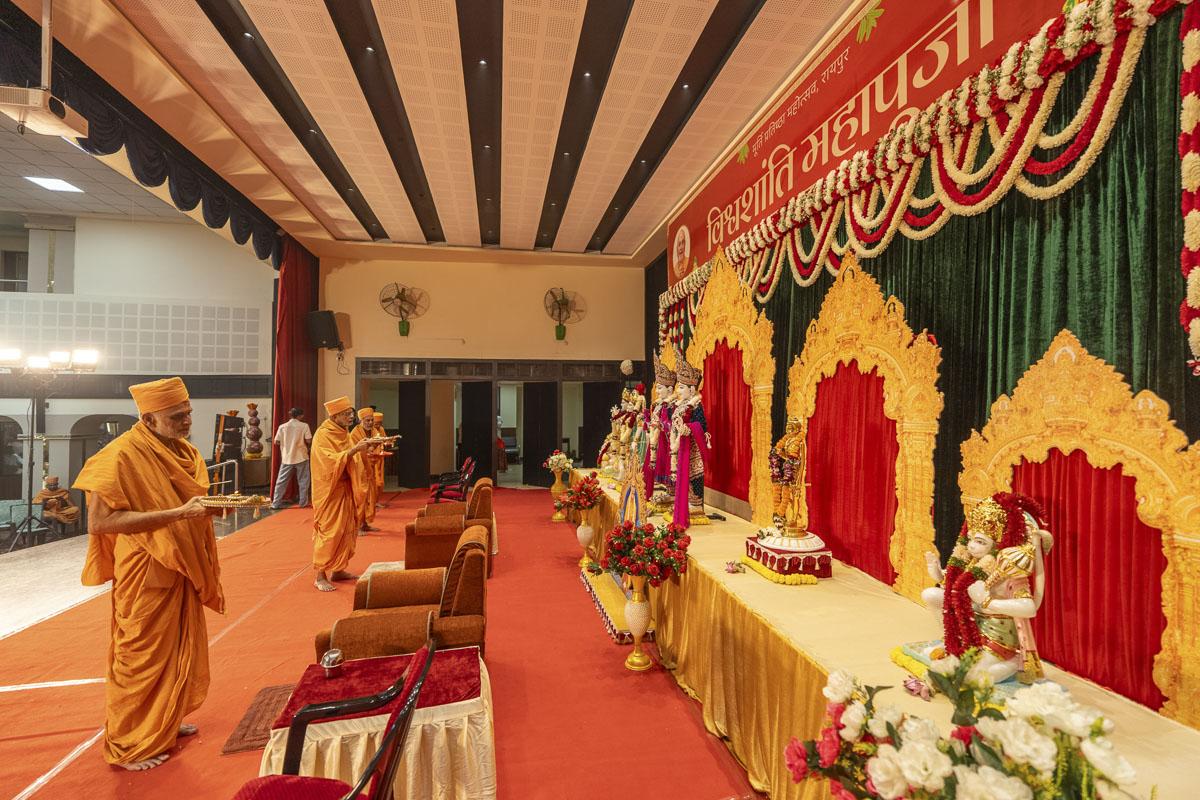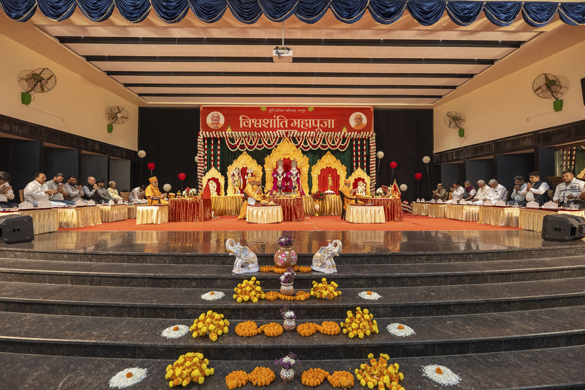 Swamis and devotees perform the vishwashanti mahapuja rituals