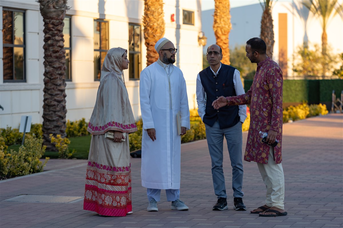 Leaders of the Dawoodi Bohra community are welcomed and receive a tour from BAPS volunteers