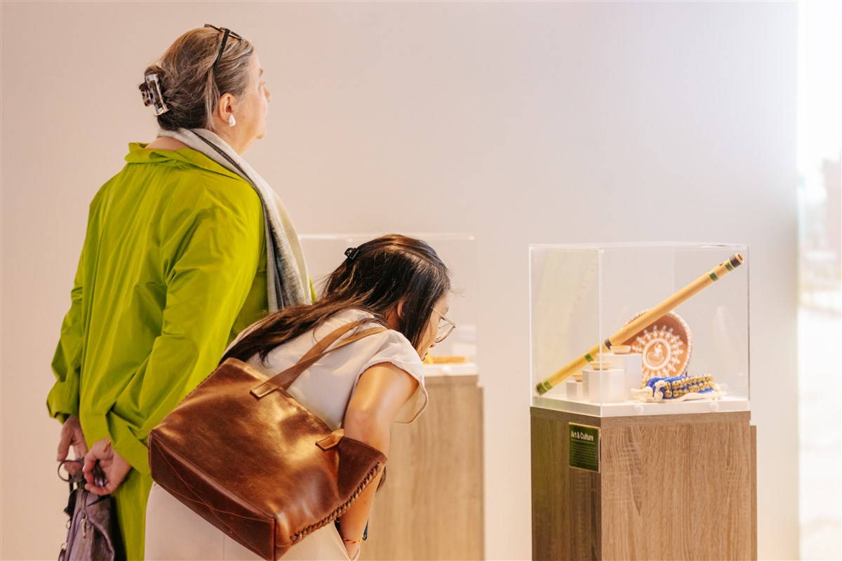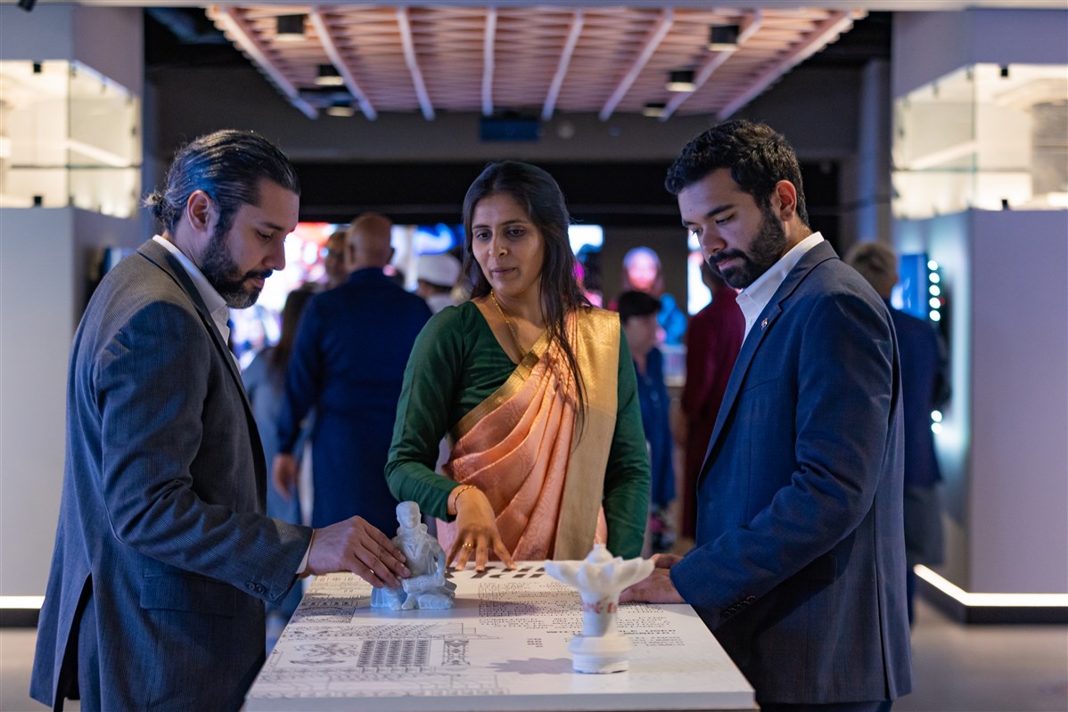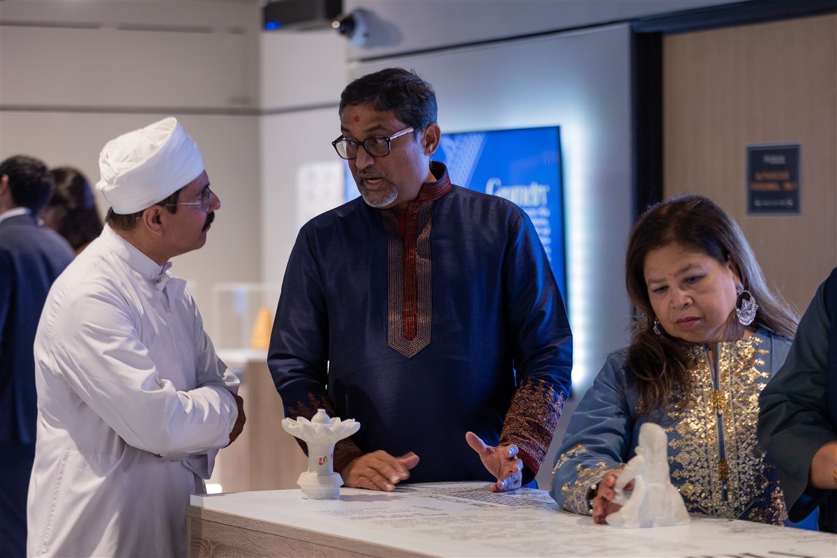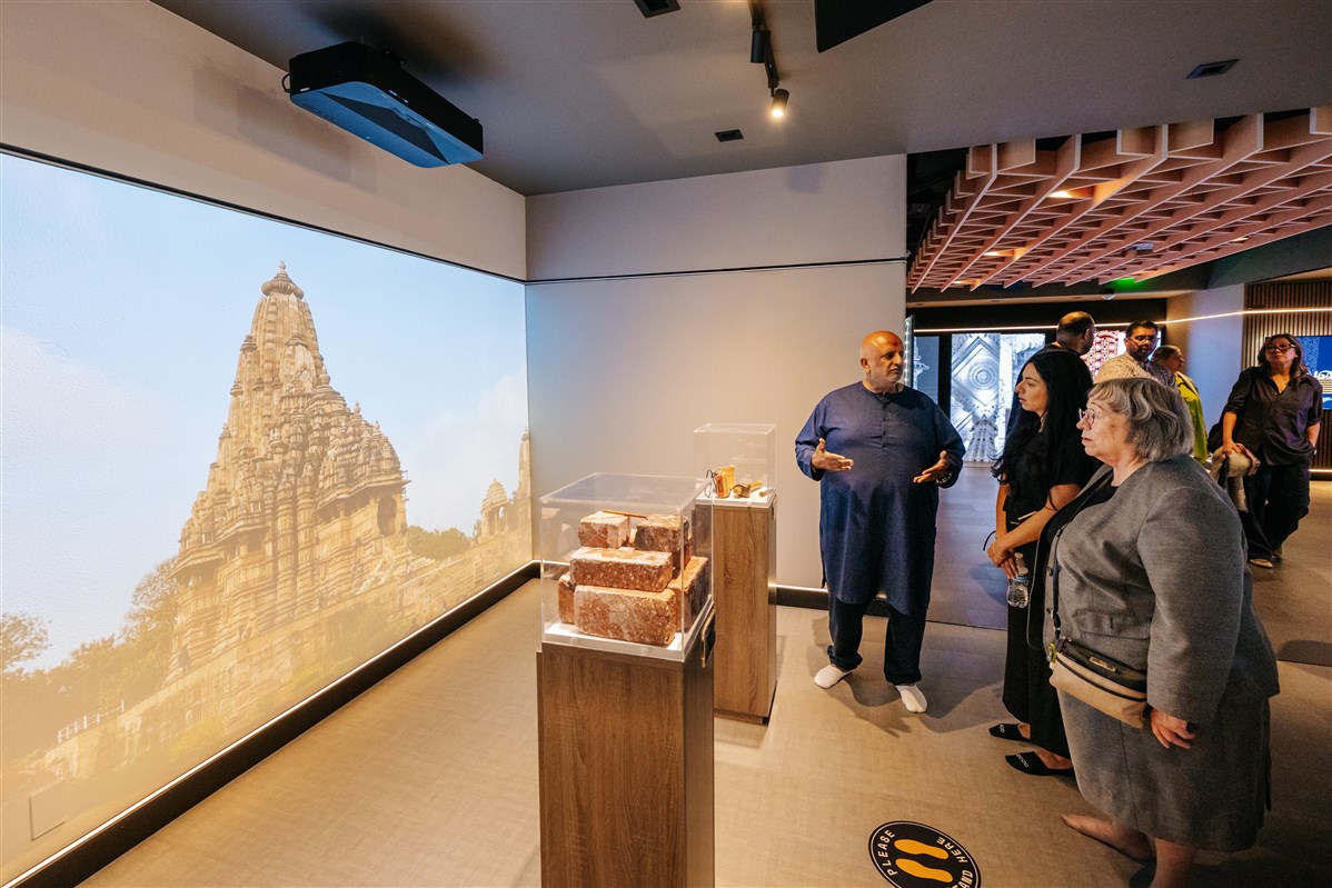 Leaders from the Los Angeles 2028 Olympic and Paralympic Games - Cultural Olympiad Committee take a closer look at the artifacts displayed in the Museum of Hindu Architecture