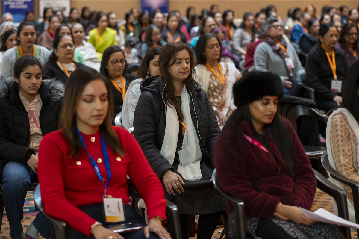 Attendees participated in guided meditation, practising stillness and mindful breathing during the session.
