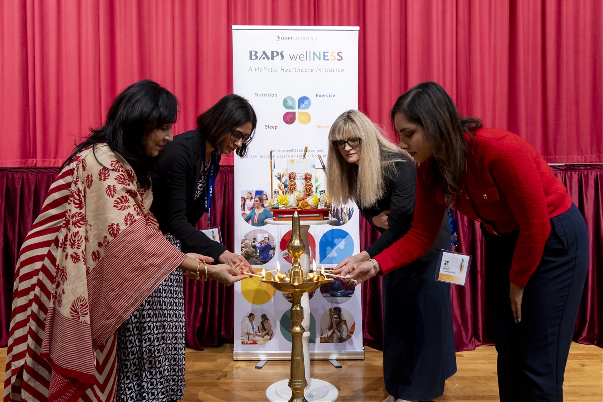 The BAPS wellNESS Health Convention was inaugurated with the ceremonial lighting of the lamp by invited speakers and volunteers.