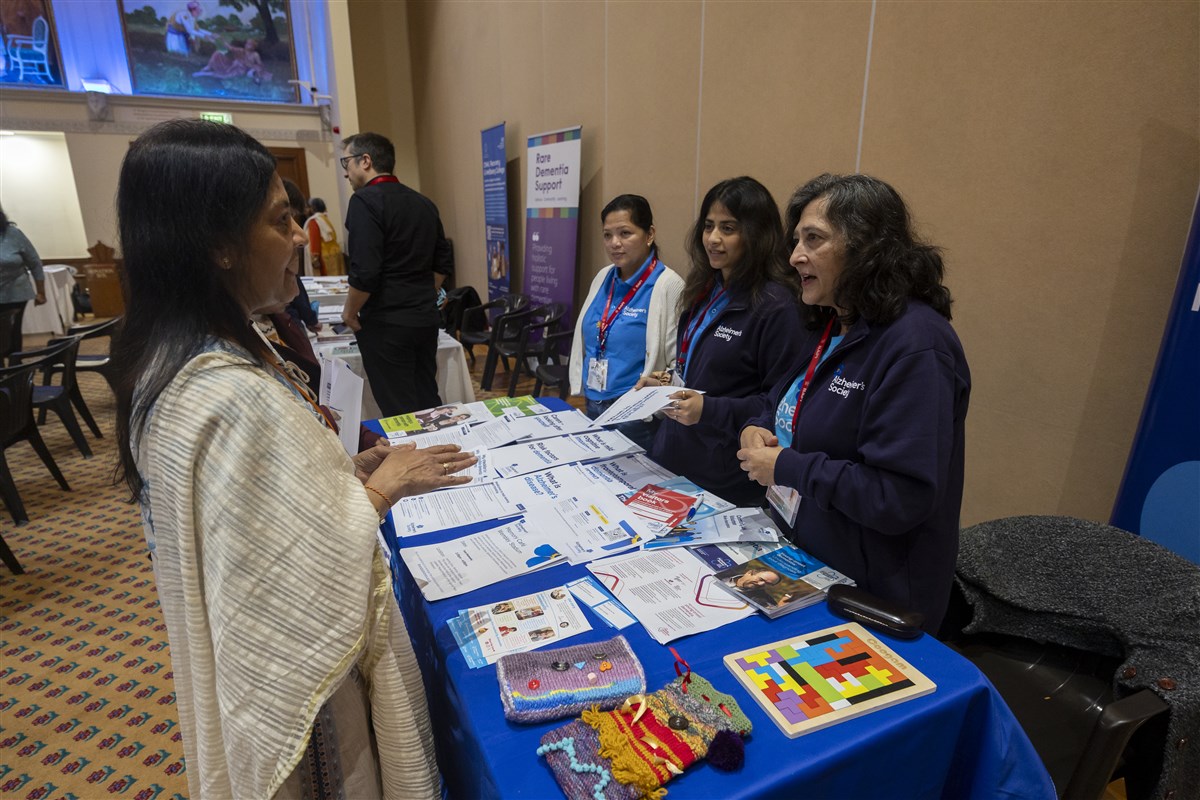 Representatives at a dementia support stall spoke with attendees, sharing information and resources to support individuals and families.