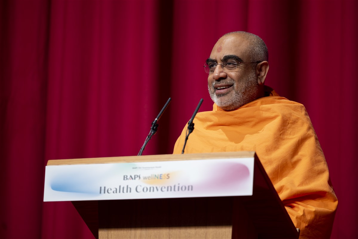 Yogvivekdas Swami spoke on the importance of Nutrition, Exercise, Sleep, and Stress Management, and the role of faith in promoting holistic well-being.