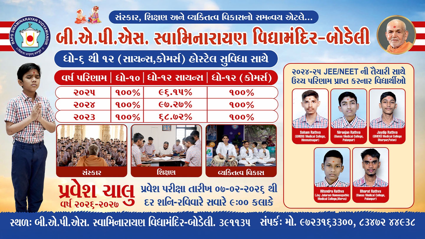 Located in the tranquil, natural environment of Chachak, Bodeli, this Vidyamandir is a respected center dedicated to fostering both academic success and ethical strength. Established in 2022 and operating under the divine inspiration of His Holiness Mahant Swami Maharaj, the school maintains a renowned spiritual and cultural ethos. It offers a comprehensive education that harmoniously blends rigorous study with time-honored values and strong character building.