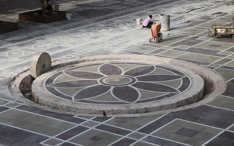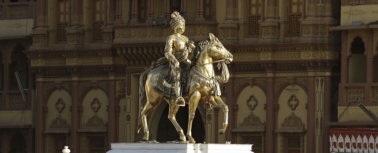 This monument commemorates the simple but historic beginning of such a majestic Mandir. Two hundred years ago, Bhagwan Swaminarayan, seated on his mare, Rojo Ghodo, galloped around what is today the Mandir campus, and prophesized that in the future, a magnificent marble Mandir will be built here, in which, idols of himself, with his ideal devotee, Gunatitanand Swami will be installed.
