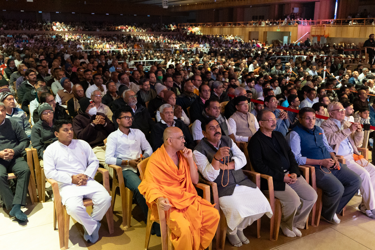 Shri Harikrishna Maharaj and Shri Gunatitanand Swami Maharaj during the symbolic Sharad Purnima festival assembly in the evening