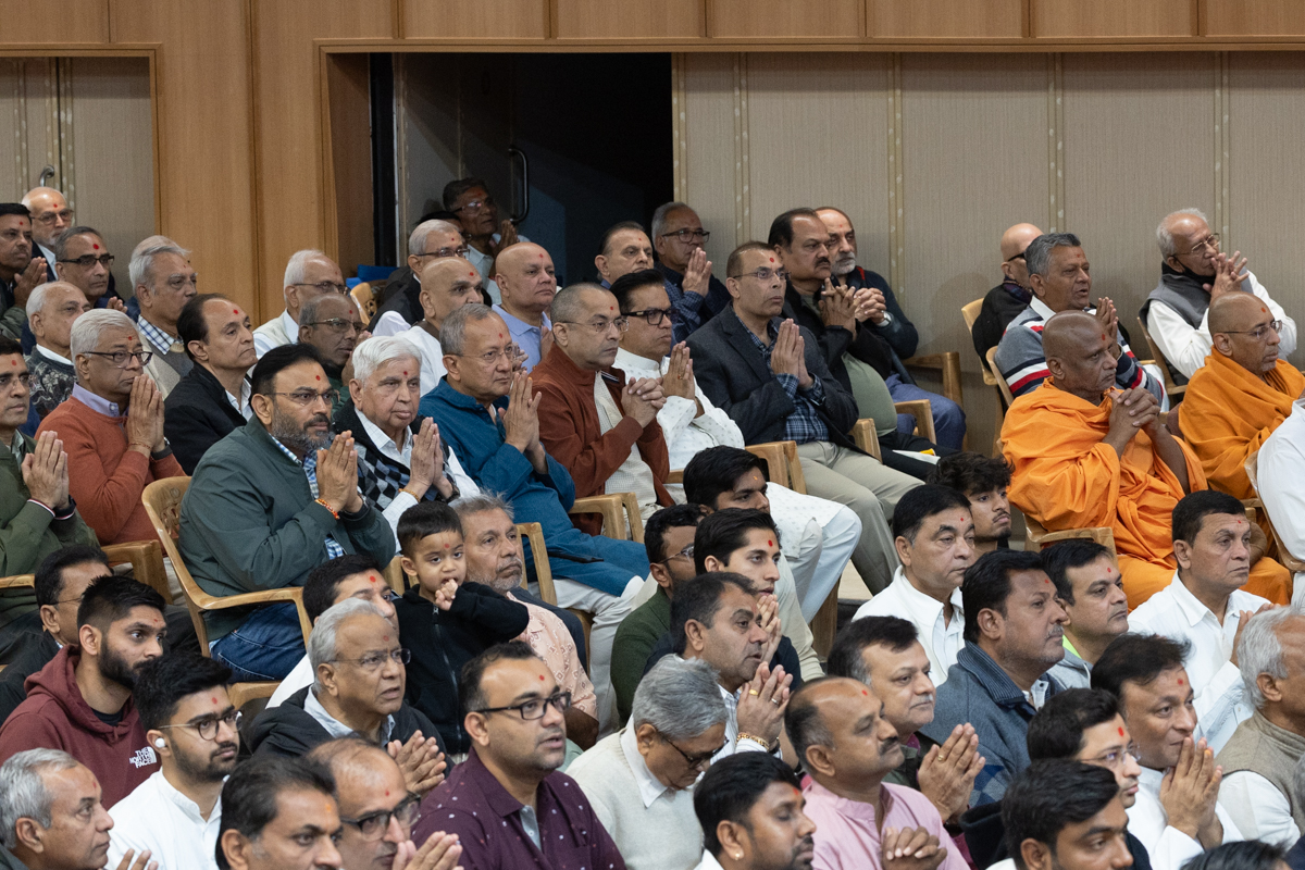 Balaks lead everyone in reciting the sadhana mantra and daily prayer in Swamishri's puja