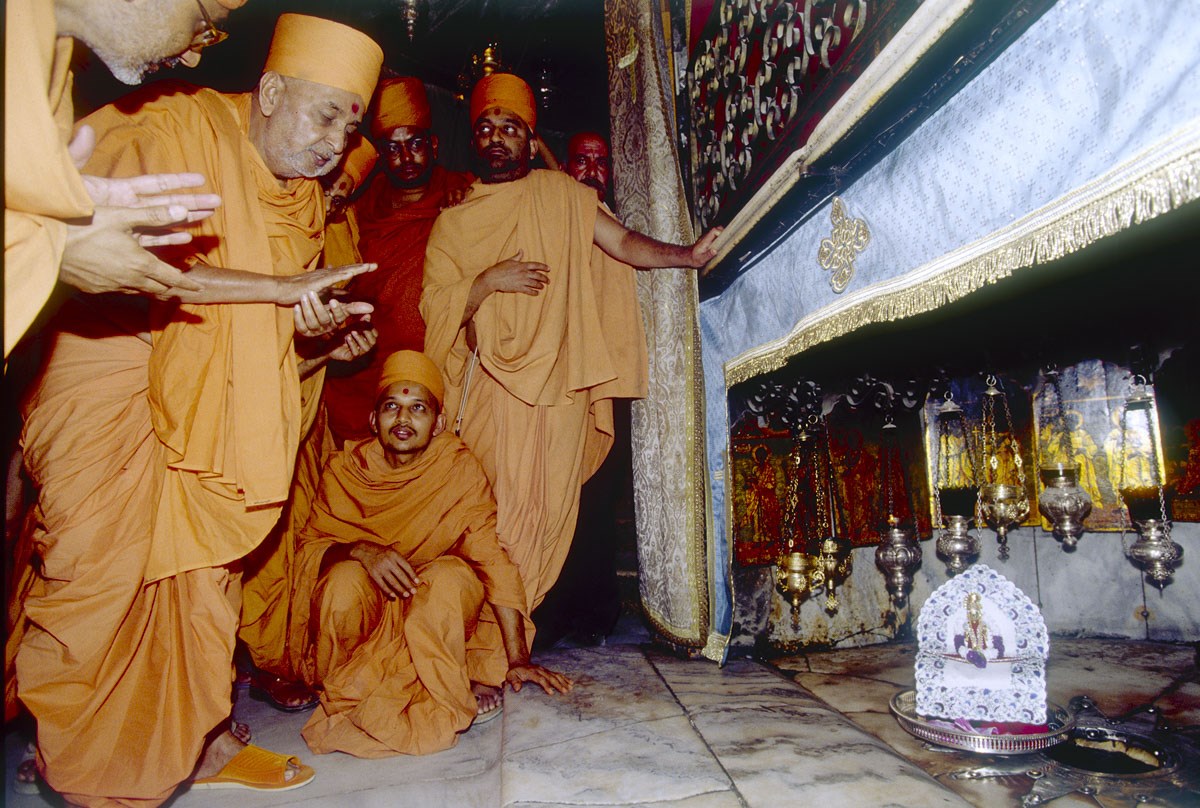 Swamishri chants the Swaminarayan dhun at the birthplace of Christ