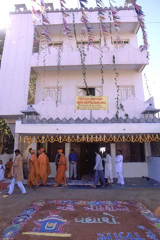 Swamishri performed the Murti pratishtha at the Satsang Bhavan, Manjalpur.