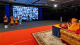 In the New Year's morning assembly at 11.45 am Swamishri blessed the congregation, " ... Gunatitanand Swami has said, 'What we need we have get so do not think you are miserable.' We have the association of God and his holy sadhu, hence there is no higher happiness than this ... When one believes oneself as atma then there will be no misery. Today, on New Year's Day, pray to God to bless oneself with happiness, that is, one's 'dehbhav' be erased and be able to eternally remember God. When one attains this, then one shall become happy ..."