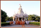 Swamishri performed the rituals of the 21st patotsav (inauguratiion anniversary) of Yagnapurush Smruti Mandir. The murti of Shastriji Maharaj was adorned with flowers and annakut was arranged. Swamishri performed the patotsav arti and finally blessed the assembly.