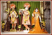 After his morning puja, Swamishri performed the murti-pratishtha rituals of pujan and arti of the murtis for the BAPS Shri Swaminarayan Mandir (hari mandir) in the village of Kudacha.
