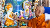 Swamishri remained seated as 11,000 devotees filed pass to honour Shri Harikrishna Maharaj.