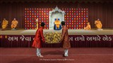 In conclusion, Swamishri’s chariot was steered into the main auditorium. The singing and dancing by children and youths made the occasion devotional and divine. Swamishri was seated with folded hands, blessing the devotees as the rath proceeded towards the stage.