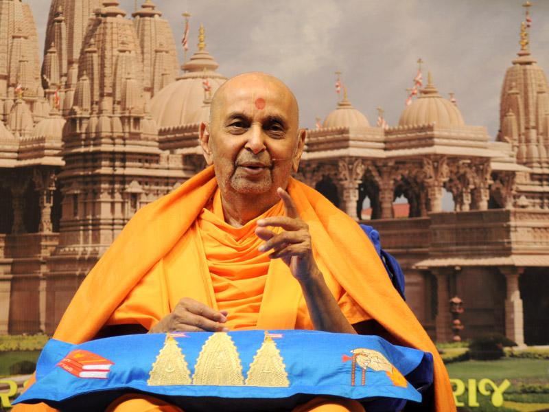 The evening satsang assembly was in commemoration to Yogiji Maharaj. It was themed on “Yogiji Sukhkari” – Yogiji Maharaj, the giver of happiness to all. The programme was interspersed with speeches, a dance and video. In conclusion, Swamishri praised the glory and saintliness of Yogiji Maharaj.