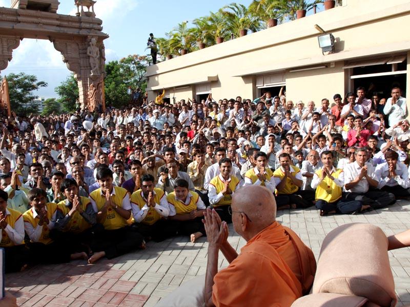 Devotees engaged in darshan of Swamishri