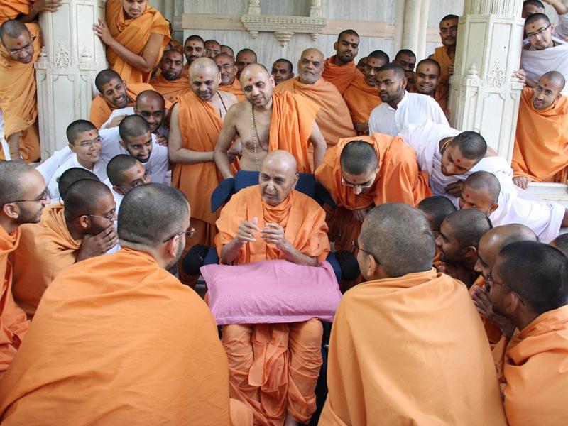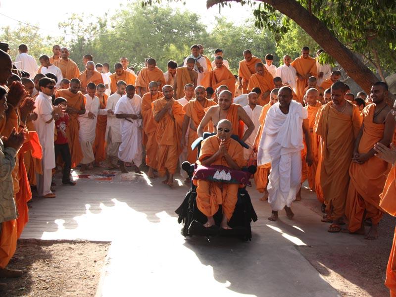 A one-day Kishore-Kishori shibir was arranged for satsangi teenagers of Sarangpur district. The shibir theme was ‘Nilkanth, Our Ideal’. After his puja Swamishri blessed the assembly of kishores.