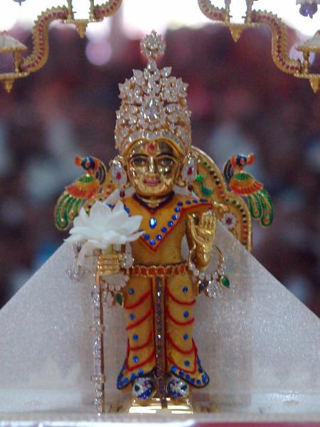 Shri Harikrishna Maharaj adorned in sandalwood paste