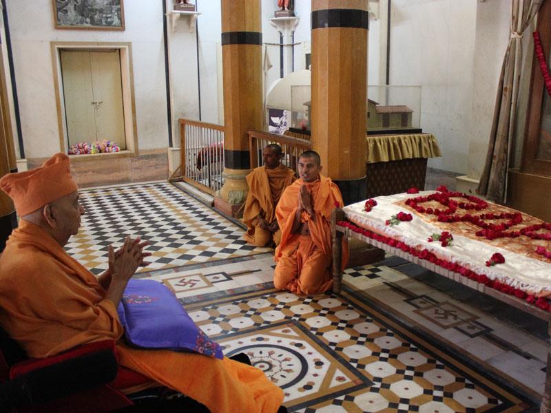 Swamishri engaged in darshan of Thakorji at Yagnapurush Smruti Mandir