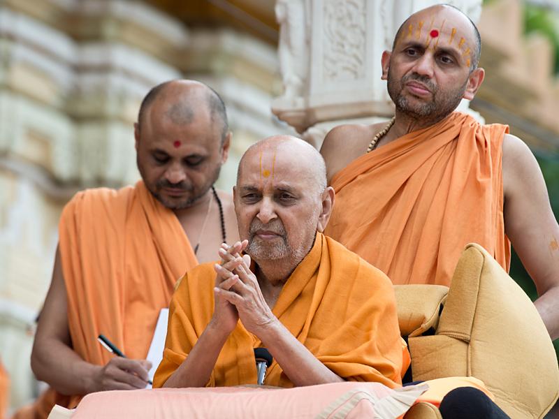Swamishri bids Jai Swaminarayan to devotees