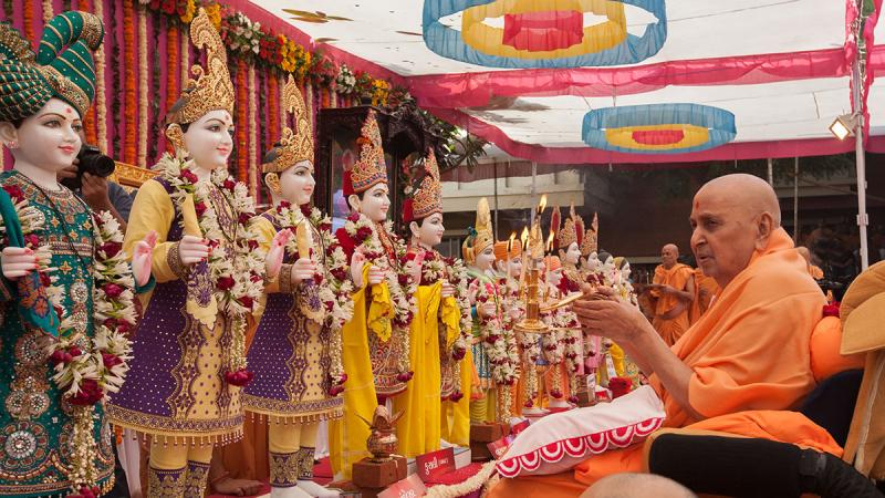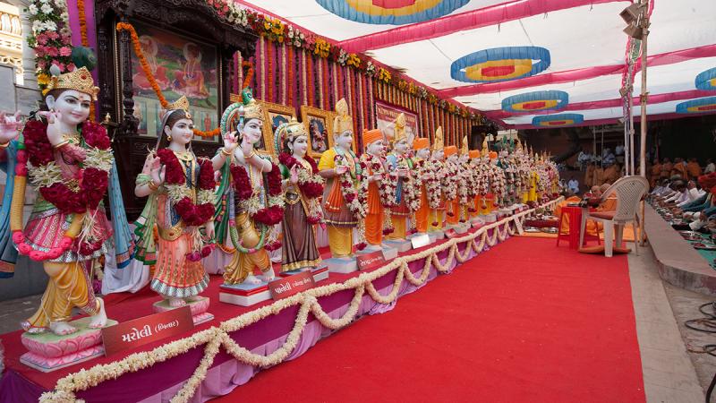 Swamishri performed the pratishtha rituals of 14 BAPS hari mandirs and the murti of Shastriji Maharaj for the BAPS Shastriji Maharaj Hospital in Atladra. The 14 hari mandirs were Jacksonville (Florida), Knoxville, Paneli (Dhoraji), Tejgadh, Raisingpura (Tejgadh), Vijhol (Tejgadh), Padarvat (Tejgadh), Gungaavada (Tejgadh), Melaan (Vallbhipur), Kurali (Dhavat), Saring (Dhavat), Maroli (Bhinar-Navsari), Pratapnagar (Jetpur-Bodeli), Susakal (Jetpur-Bodeli) and BAPS Shastriji Maharaj Hospital (Atladra). Swamishri also sanctified the bricks for the proposed BAPS hari mandirs in Anjesar, Vasnakotariya and Vaghai (Dang).