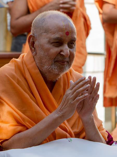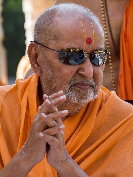 Sadhus doing darshan of Swamishri in the mandir pradakshina