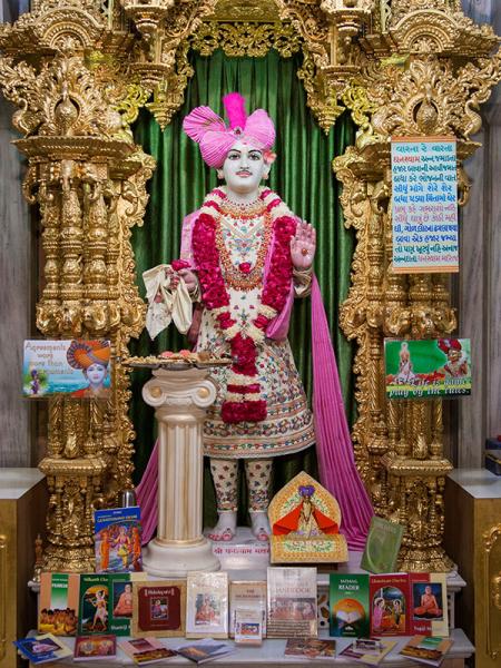 Swamishri inaugurated the ‘Tribal Youth Training Centre’ to educate and enlighten tribal youths about satsang. On behalf of the 44 tribal youths Pujya Mahant Swami and Pujya Ishwarcharan Swami honoured Swamishri with a garland. Thereafter, Swamishri released a bunch of balloons in the air to symbolize the inauguration of the training centre.