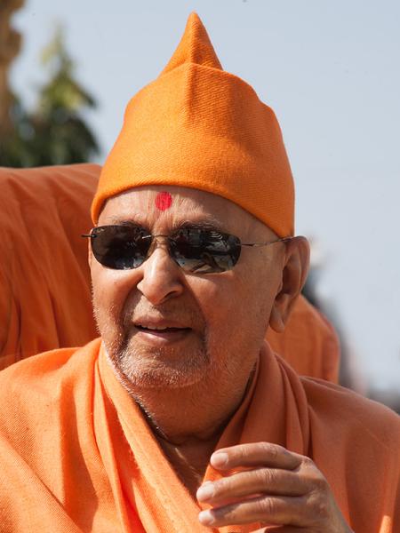 Swamishri greets devotees with 'Jai Swaminarayan'