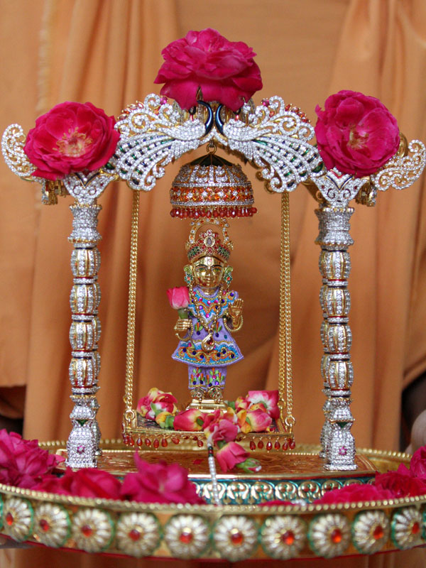 Swamishri swings Shri Harikrishna Maharaj in a hindolo