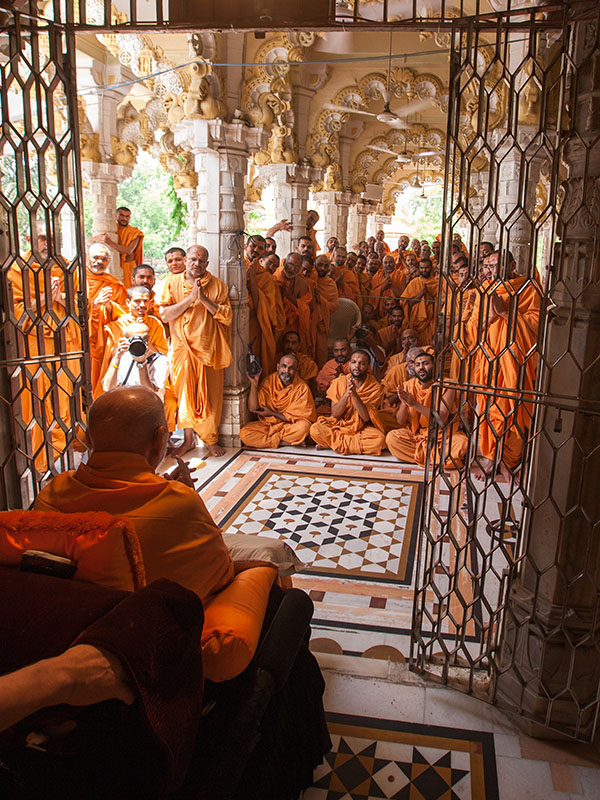Swamishri greets sadhus with 'Jai Swaminarayan'