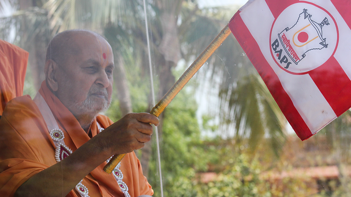 Swamishri greets devotees with 'Jai Swaminarayan'