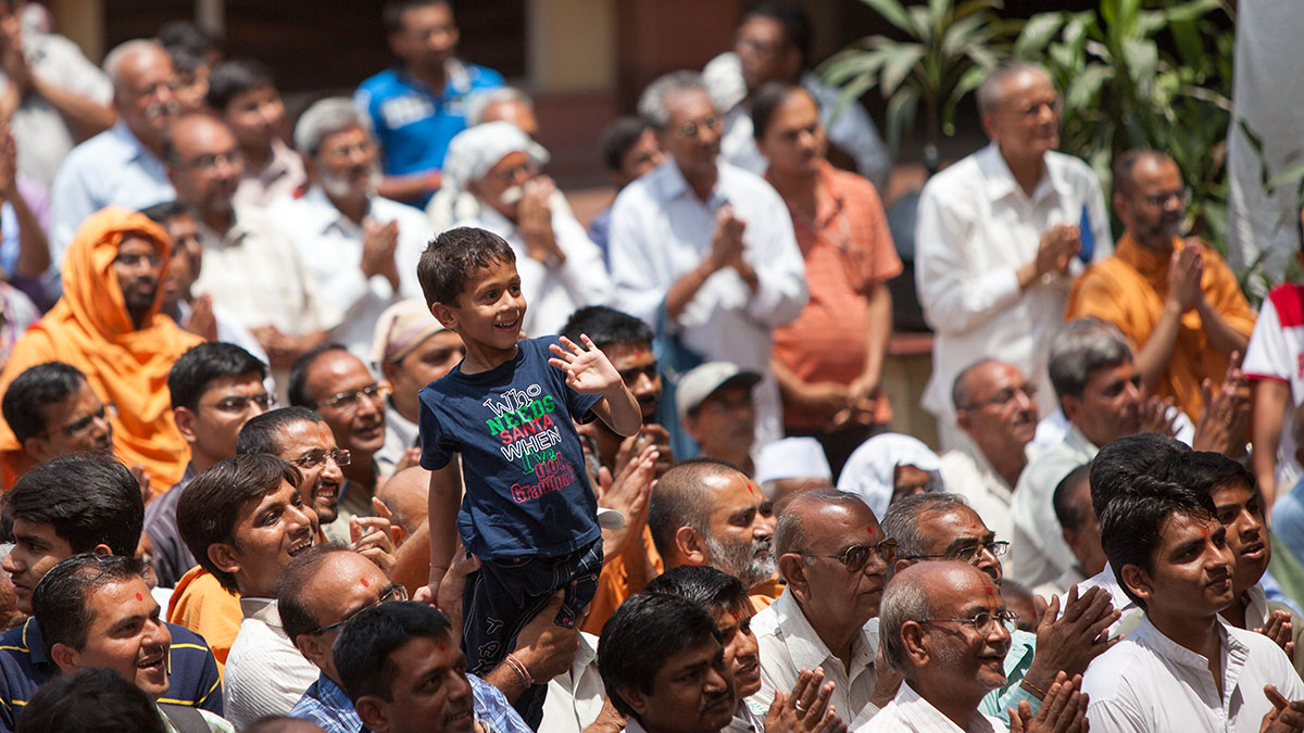 Swamishri greets devotees with 'Jai Swaminarayan'