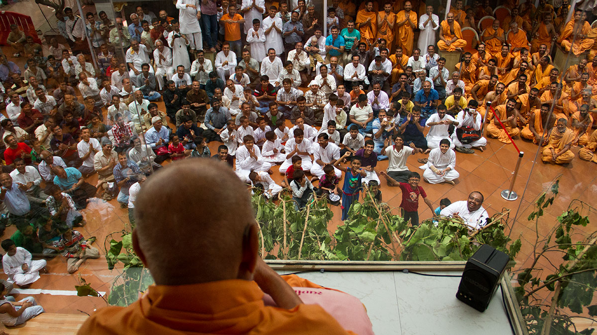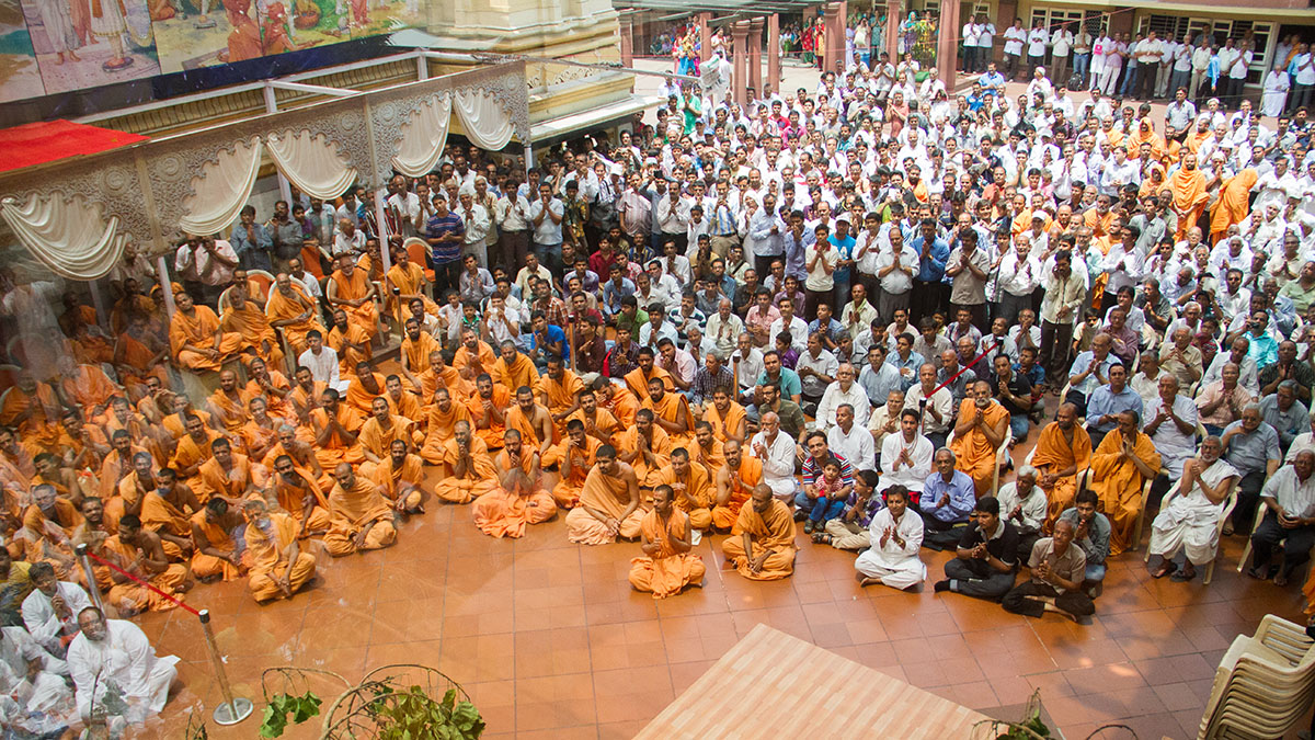 HH Pramukh Swami Maharaj arrives in balcony at 12:32 pm