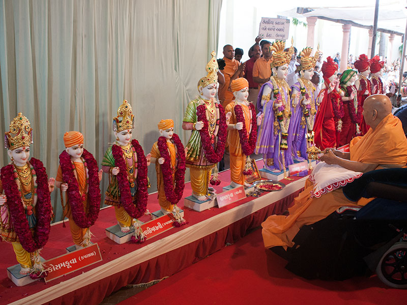 Swamishri performed the murti-pratishtha rituals of puja and arti of the murtis for the BAPS hari mandirs in Udaipur (Rajasthan), Jamankuva (Mandvi region), Kosamkuva and Nalimdhani (tribal region of Kaprada region) and Abrama (Tithal region).
