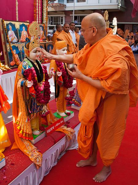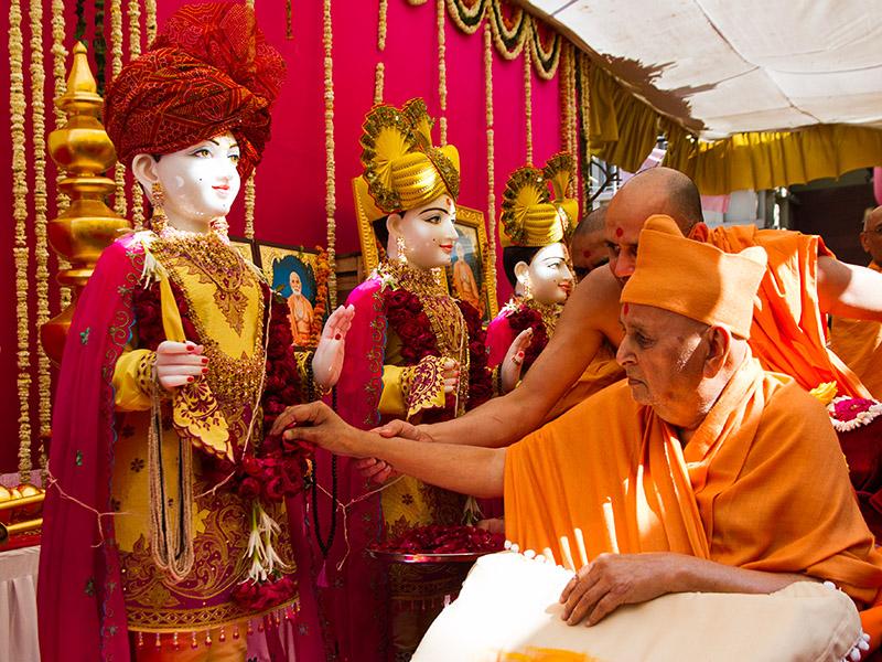 Swamishri performed the murti-pratishtha rituals of arti and pushpanjali of the murtis for eight BAPS hari mandirs: Vadavi (Kadi region), Anjar (Kutch), Ghayaj (Goriyad region), Devgadh Bariya (Panch Mahal), Torna (Kathlal region), Nanikhadi (Donja region), Sadarvel (Donja region) and Anklav (Anklav region).