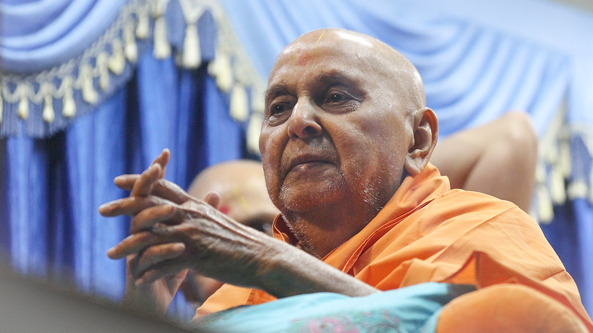 Swamishri greets devotees with 'Jai Swaminarayan'