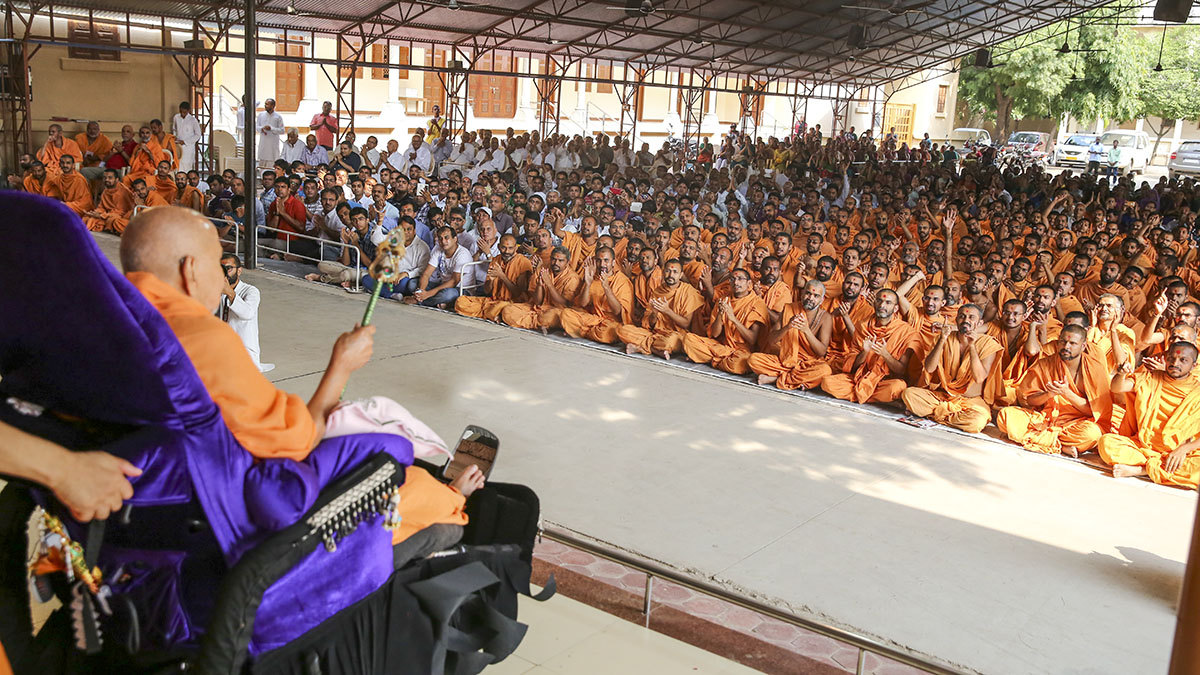 Swamishri greets sadhus with 'Jai Swaminarayan'