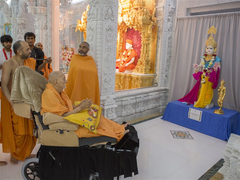 Swamishri during mandir visit at BAPS Shri Swaminarayan Mandir, Robbinsville NJ