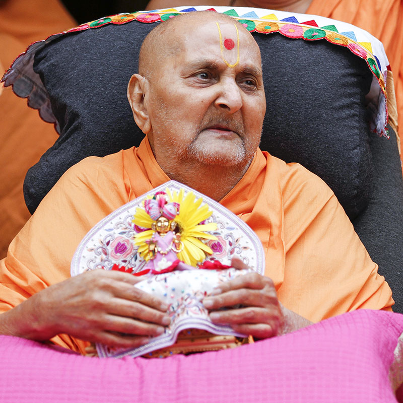 Swamishri greets devotees with 'Jai Swaminarayan'