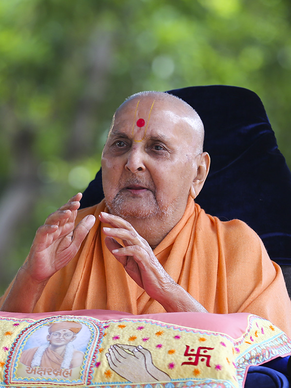 Swamishri greets devotees with 'Jai Swaminarayan'
