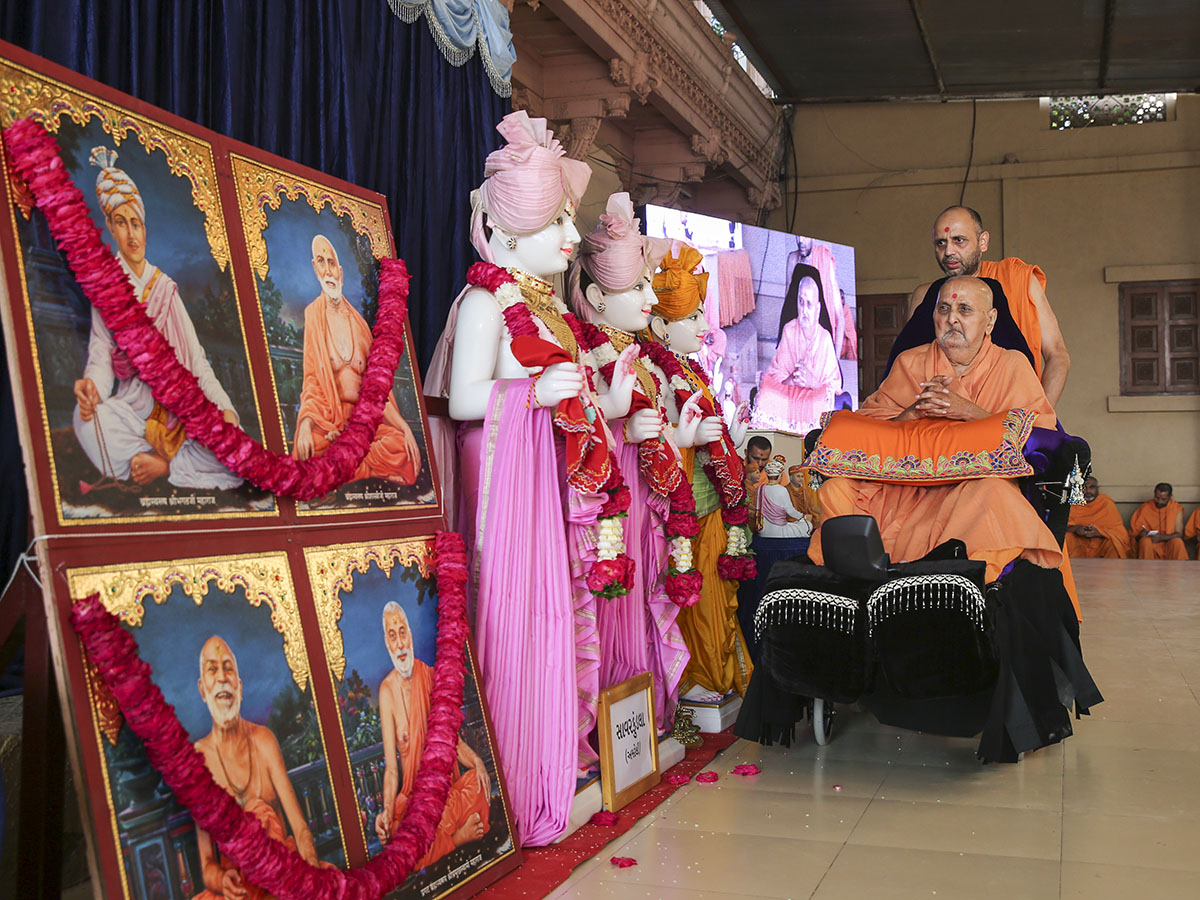 Swamishri engrossed in darshan of Brahmaswarup Yogiji Maharaj