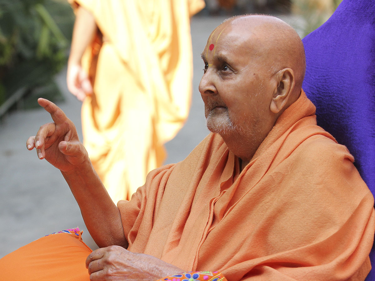 Swamishri on his way for Shastriji Maharaj's darshan at Shri Yagnapurush Smruti Mandir