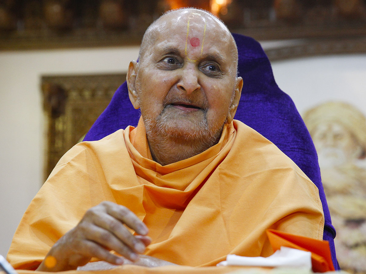 Swamishri greets sadhus with 'Jai Swaminarayan'