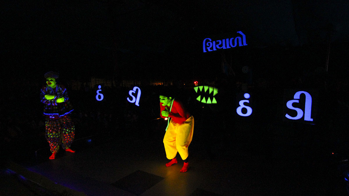 Youths from Akshar Purushottam Chhatralaya (hostel), Atladra, perform a cultural dance before Swamishri