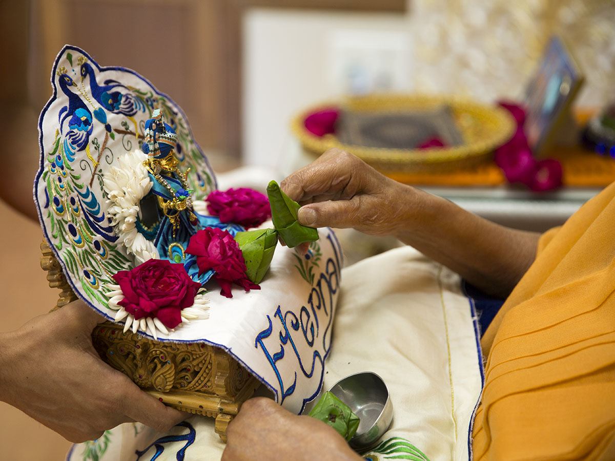 Shri Harikrishna Maharaj in Swamishri's morning puja