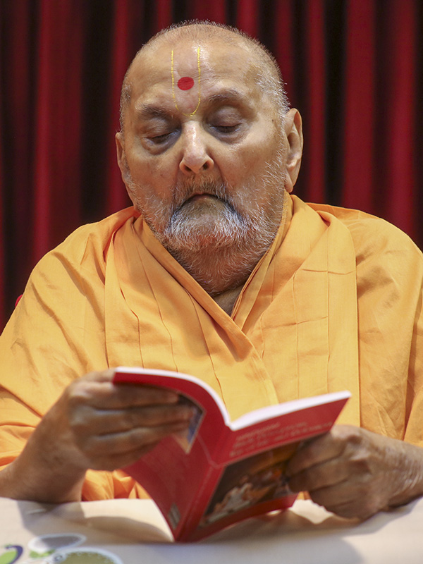 Swamishri inaugurates a new print publication, 'Hindu Perceptions, Way of Life and Reformers' in the 'Hinduism' series, in the evening