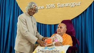 Dr. Kalam presents his book 'Transcendence - My Spiritual Experiences with Pramukh Swamiji' to Swamishri