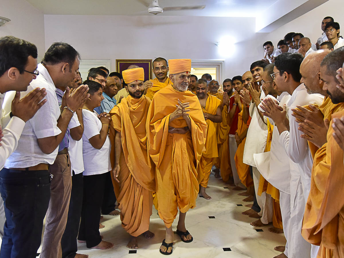 Param Pujya Mahant Swami greets all with 'Jai Swaminarayan', 5 Sep 2016