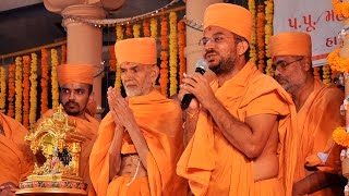 Param Pujya Mahant Swami during the assembly, 8 Nov 2016
