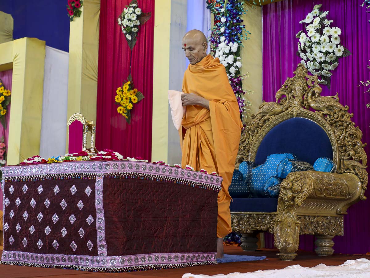 Param Pujya Mahant Swami performs his morning puja, 16 Nov 2016